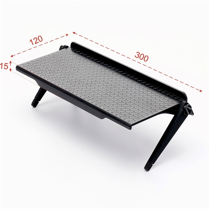 При установке полки отрегулируйте угол наклона и зафиксируйте ножки под нужным углом. Ножки свободно регулируются и надёжно фиксируются винтами в нужном положении, что обеспечивает прочное крепление на различных поверхностях.