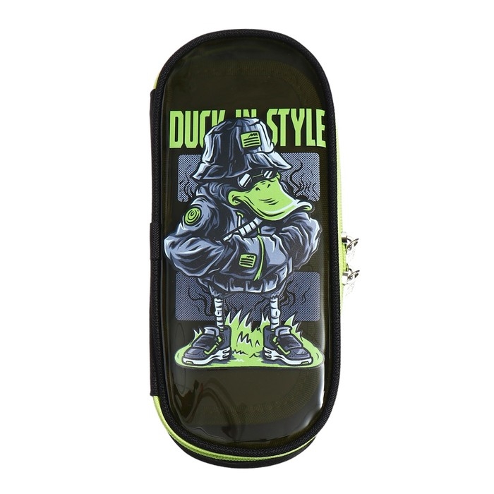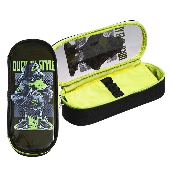Пенал "deVENTE. Cool Duck" 21x8x5 см, овальный для 50 предметов, с внутренним органайзером-створкой, текстильный с передней створкой из полупрозрачного тонированного ПВХ, на молнии