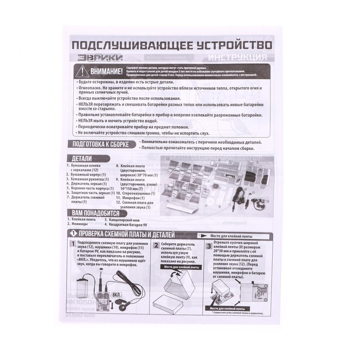 Набор для опытов «Подслушивающее устройство», работает от батареек