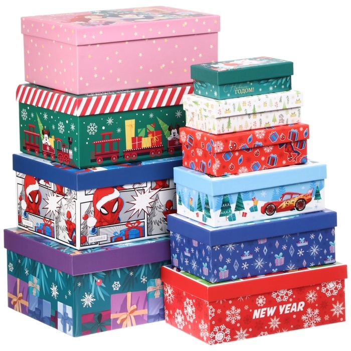 Новый год. Набор коробок 10 в 1 "С Новым годом!", Disney зеленая