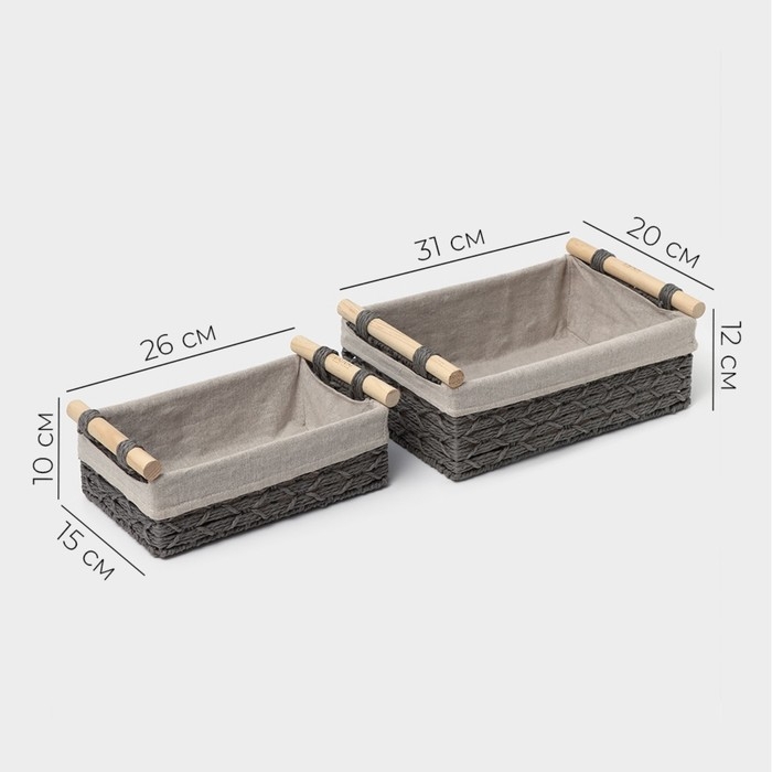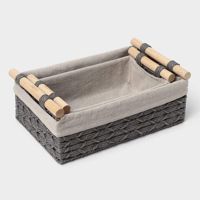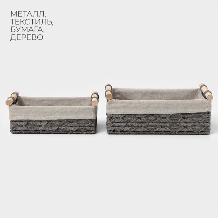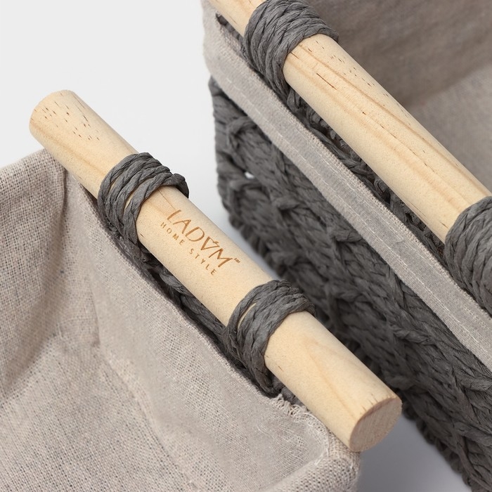 Корзины для хранения LaDо́m, ручное плетение, с ручками, 2 шт, цвет серый