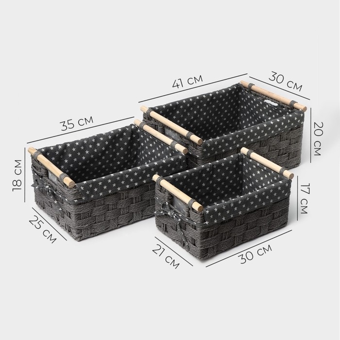 Корзины для хранения LaDо́m, ручное плетение, 3 шт, цвет серый