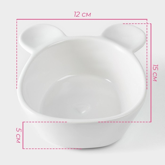 Конфетница керамическая Доляна «Мишка Отто», 290 мл, 15×12×5 см, цвет белый