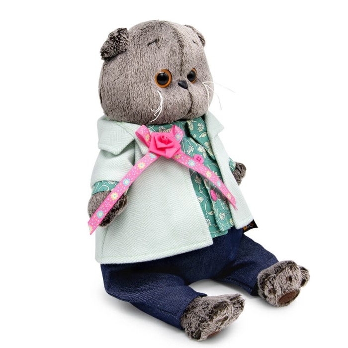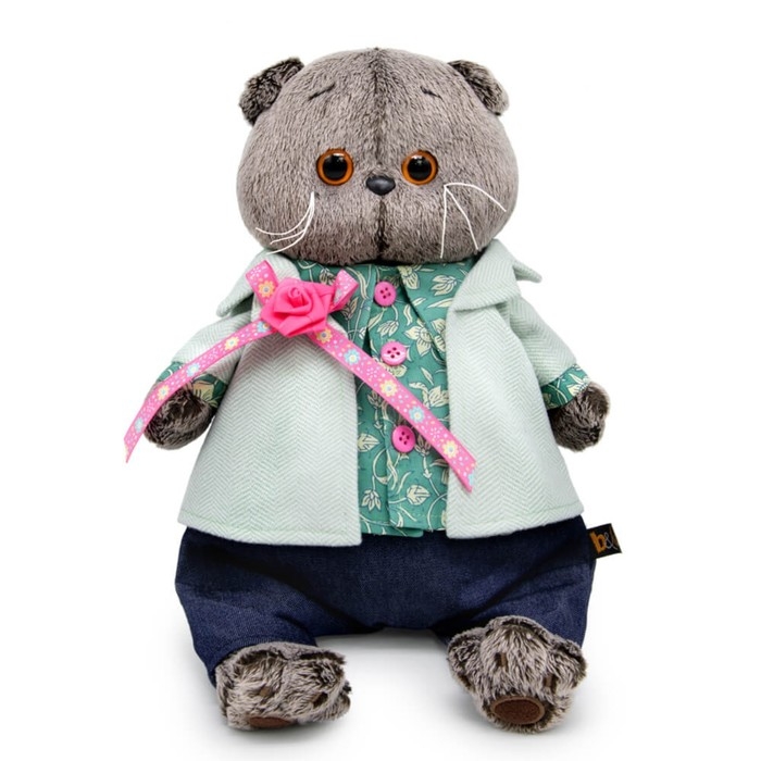 Мягкая игрушка «Басик», в твидовом пиджаке с розой, 19 см
