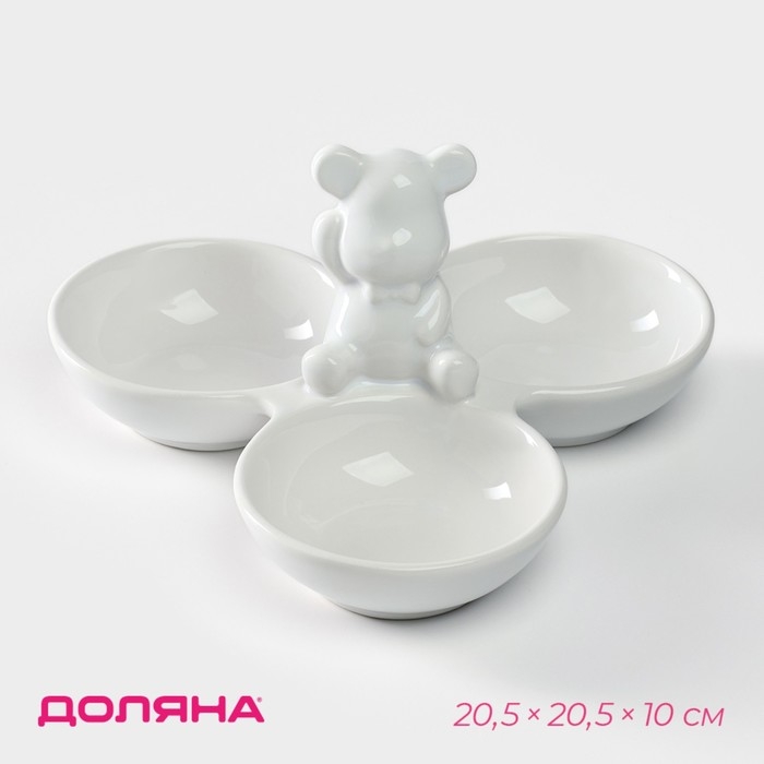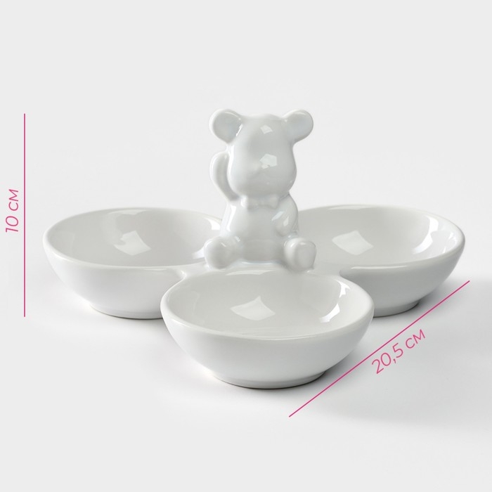 Менажница 3 ячейки Доляна «Мишка Отто», 20,5×10 см, цвет белый