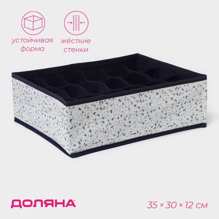 Органайзер для хранения белья Доляна «Тропики», 16 ячеек, 27×25×10 см, цвет синий