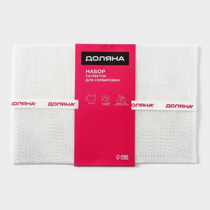 Салфетки сервировочные на стол Доляна, 4 шт, 45×30 см, ПВХ, цвет белый