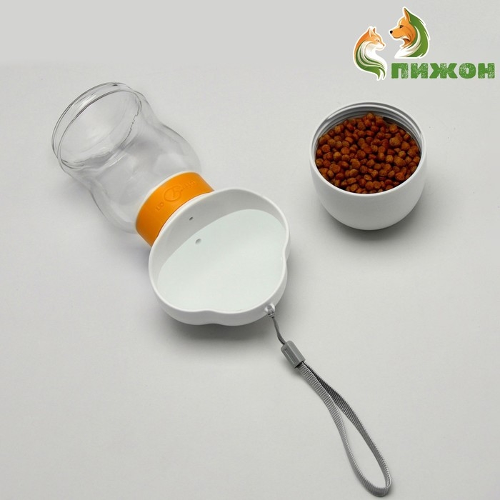 Поилка прогулочная 585 мл+контейнер для корма, жёлтая