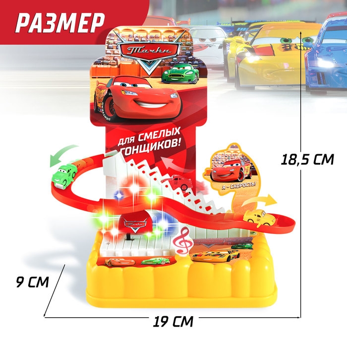 Автотрек «Тачки» , 3 машинки, световые и звуковые эффекты, работает от батареек