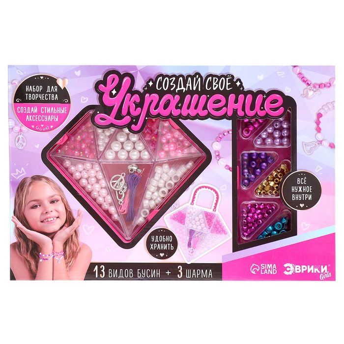 Набор для творчества «Создай своё украшение: Сумочка-бриллиант» — идеальное решение для занятия творчеством! Яркие бусины разных цветов и размеров позволят воплотить самые разные идеи.