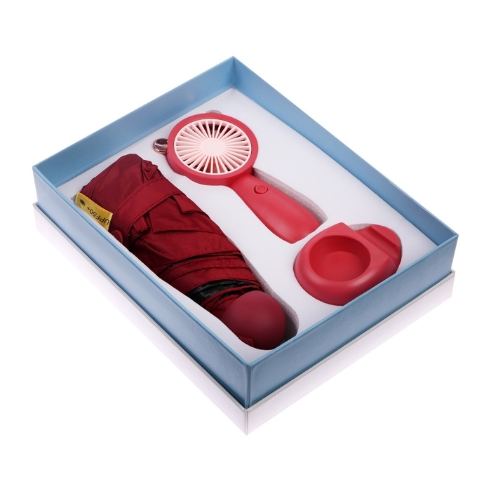 Подарочный набор вентилятор и зонт, красный