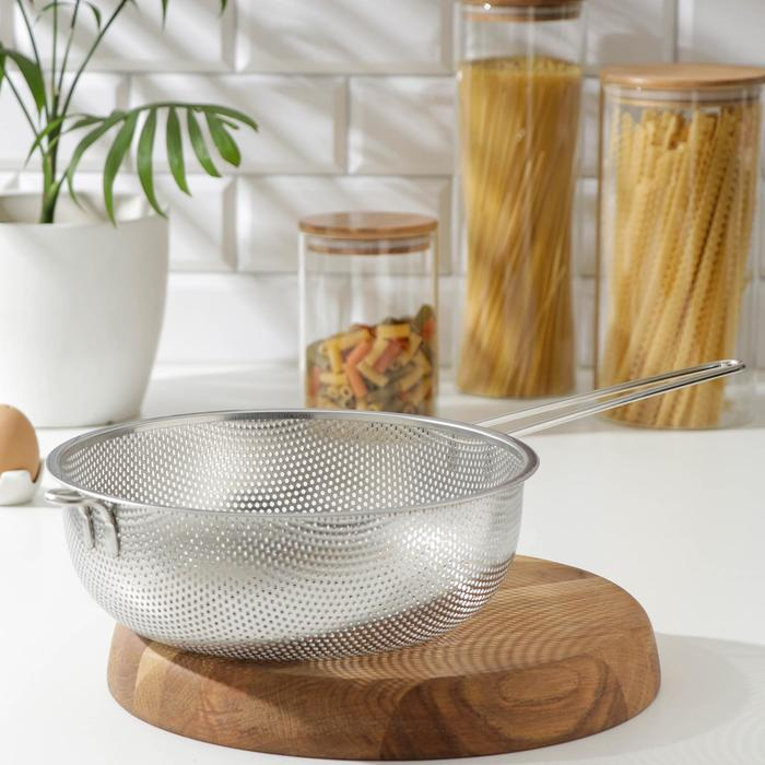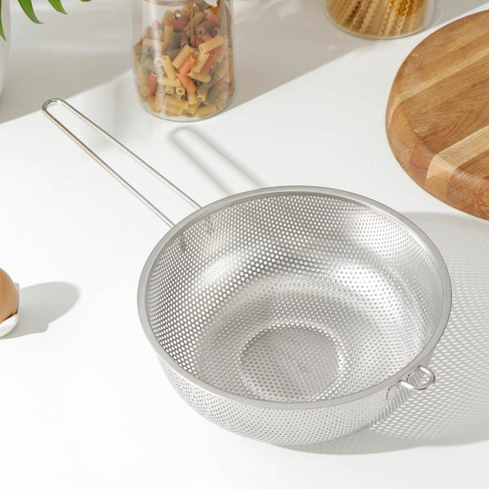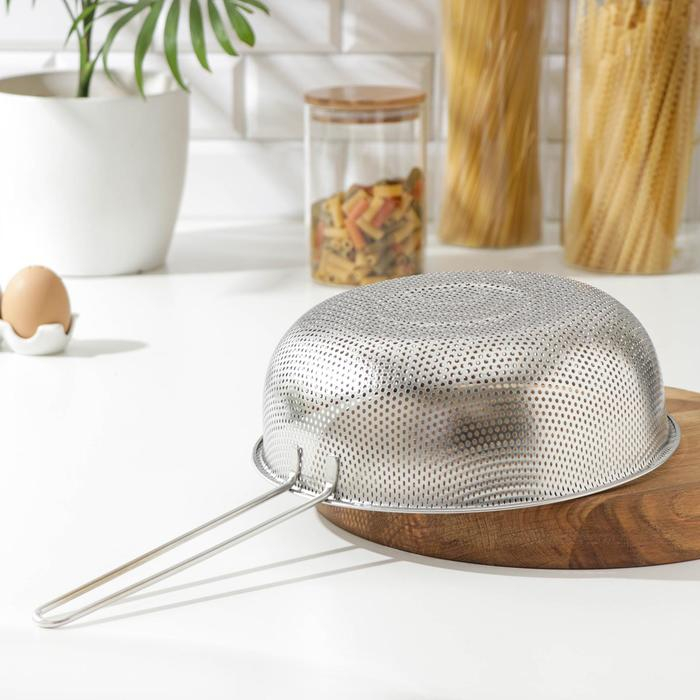 Дуршлаг из нержавеющей стали «Марко», d=25 см, длинная ручка, цвет хромированный