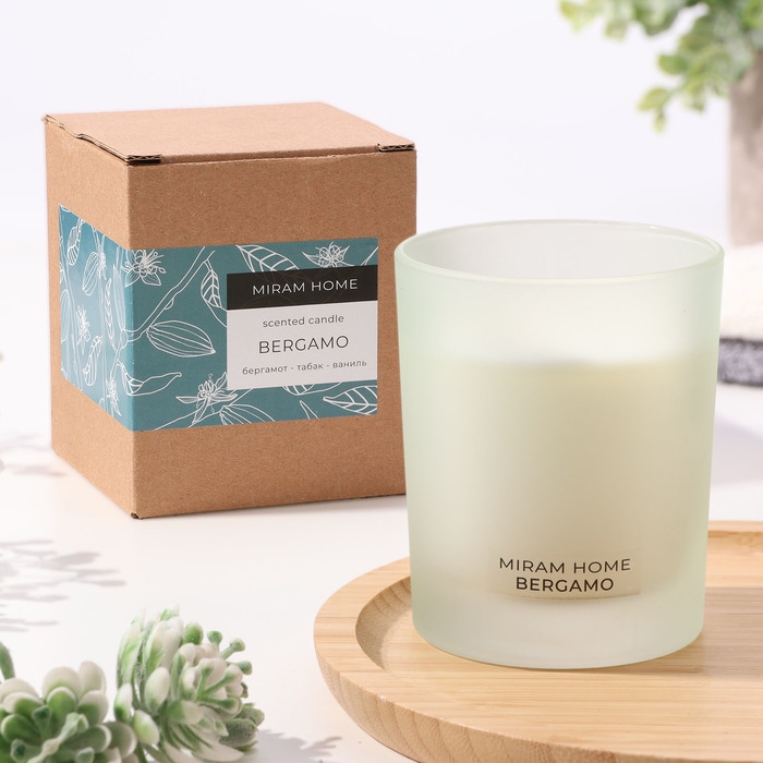 Свеча ароматическая в стекле "BERGAMO", табак, бергамот и ваниль, 200 г