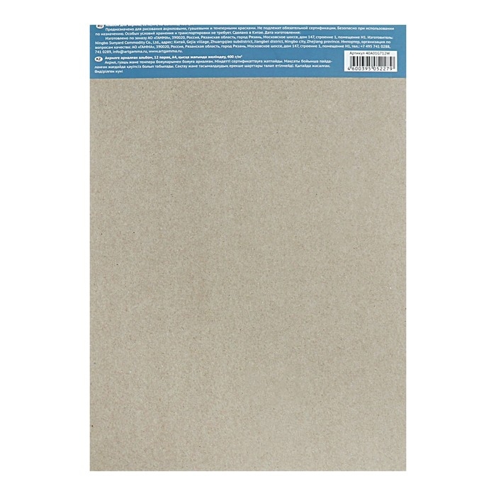 Альбом для акрила ГАММА серии "Студия" формата А4 плотностью 400 г/м2, текстура "лён". Альбом представляет собой склейку по короткому краю высококачественной бескислотной бумаги ,основу которой составляет 100% целлюлоза. Бумага обладает естественным белым цветом. Обладает высокой степенью адгезии и не требует дополнительной подготовки. Бумага рекомендуется для водорастворимых красок – акрила, гуаши, темперы. Альбом на склейке с картонной плотной подложкой , что позволяет использовать альбом "на весу" как планше.