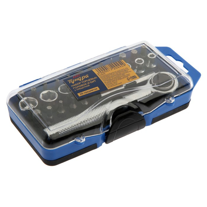 Набор торцевых головок и бит ТУНДРА, трещотка, удлинитель, 28 предметов