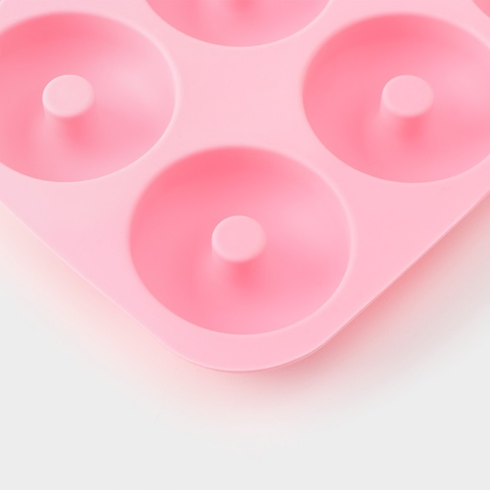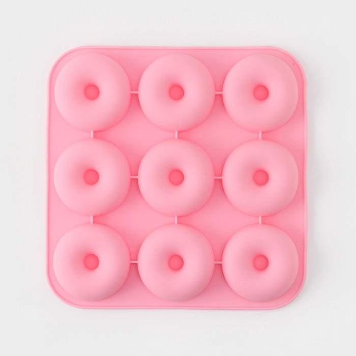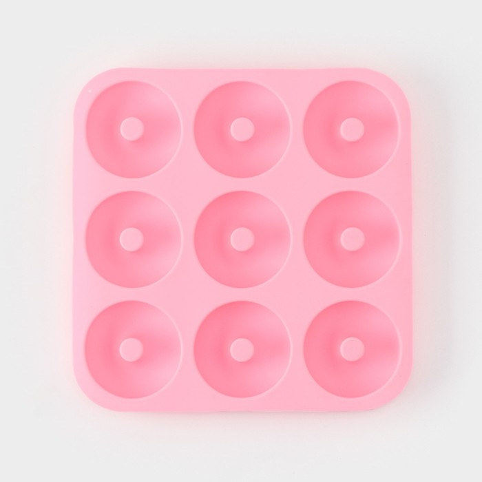 Форма для выпечки Доляна «Сладости. Пончик», силикон, 28,5х28,5х3 см, 9 ячеек (d=8 см), цвет розовый