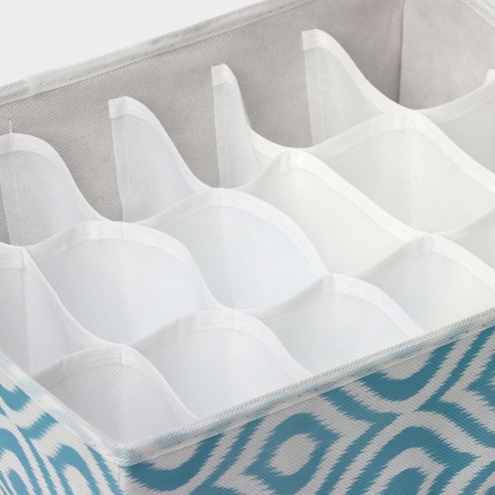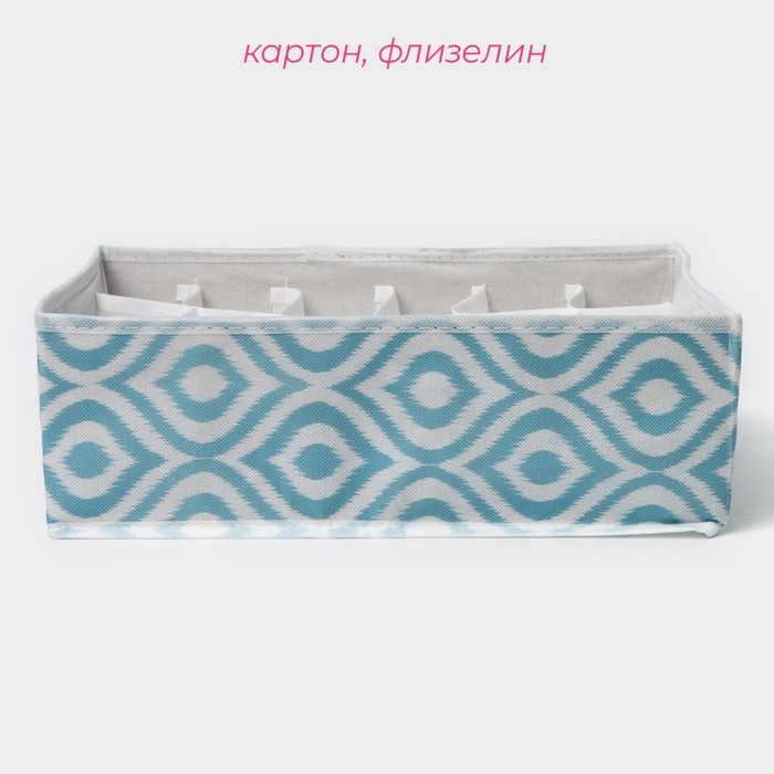 Органайзер для хранения белья Доляна «Тропики», 16 ячеек, 27×25×10 см, цвет синий