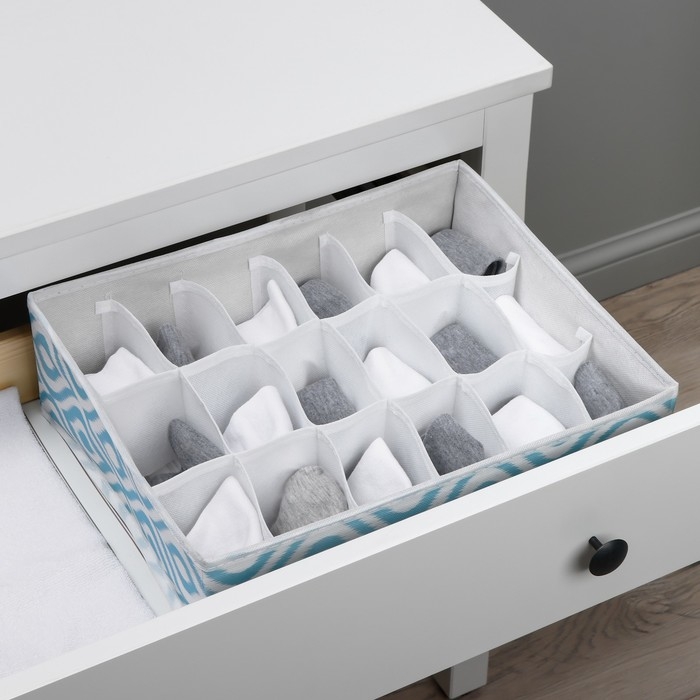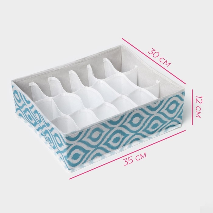 Органайзер для хранения белья Доляна «Лагуна», 18 ячеек, 35×30×12 см, цвет бирюзовый