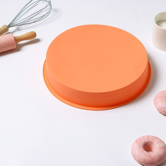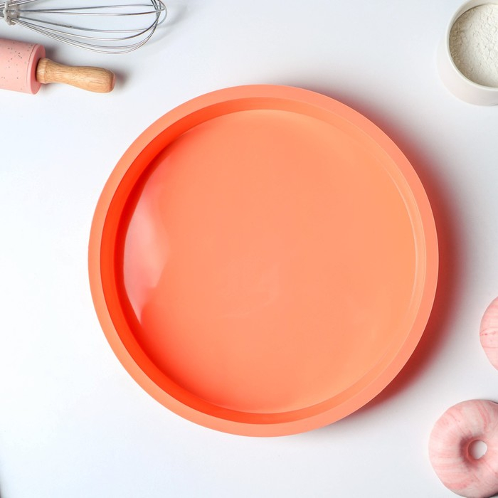 Форма для выпечки Доляна «Круг», силикон, 28×5,5 см, внутренний d=25.5 см, цвет оранжевый