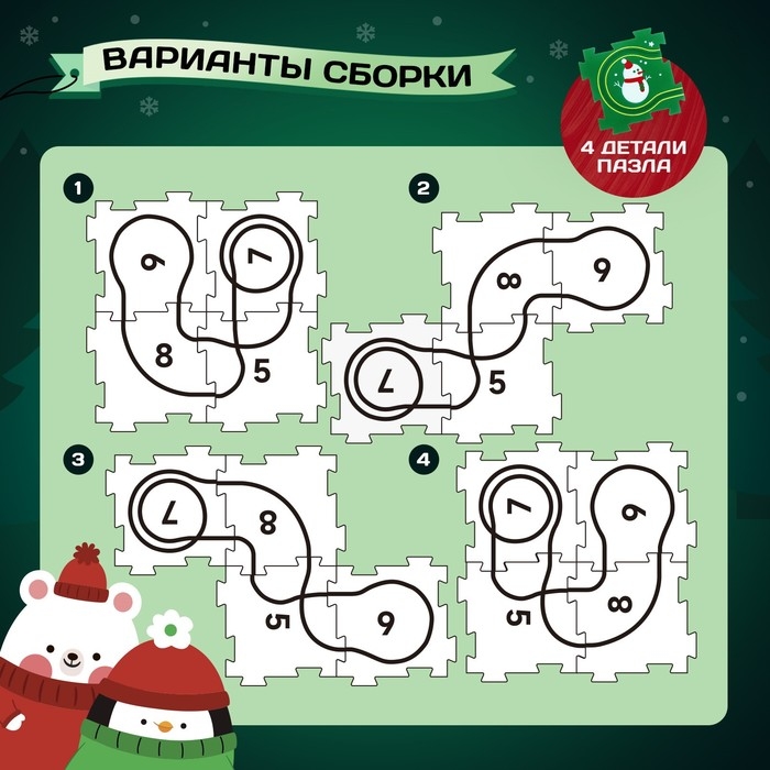 - Количество пазлов в наборе — 4 штуки.