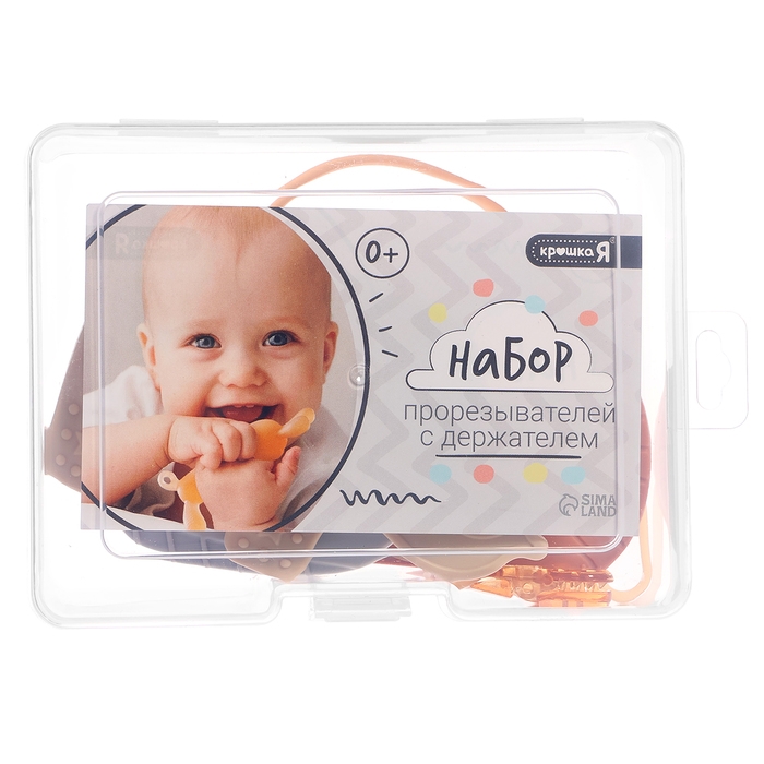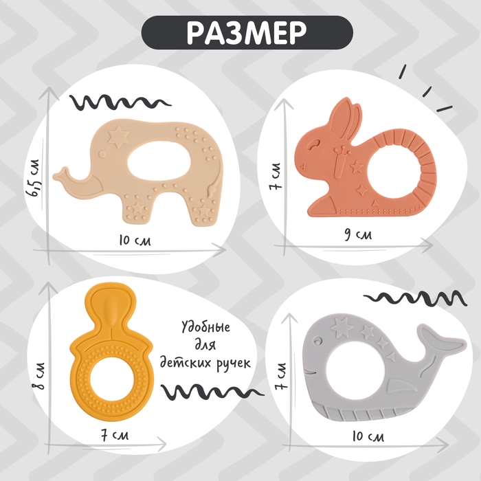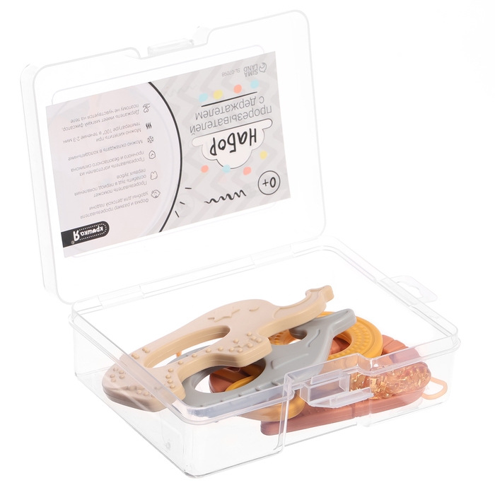 Набор прорезывателей для зубов «Зверята», бутылочка, силиконовый шнурок, в контейнере, 4 шт.