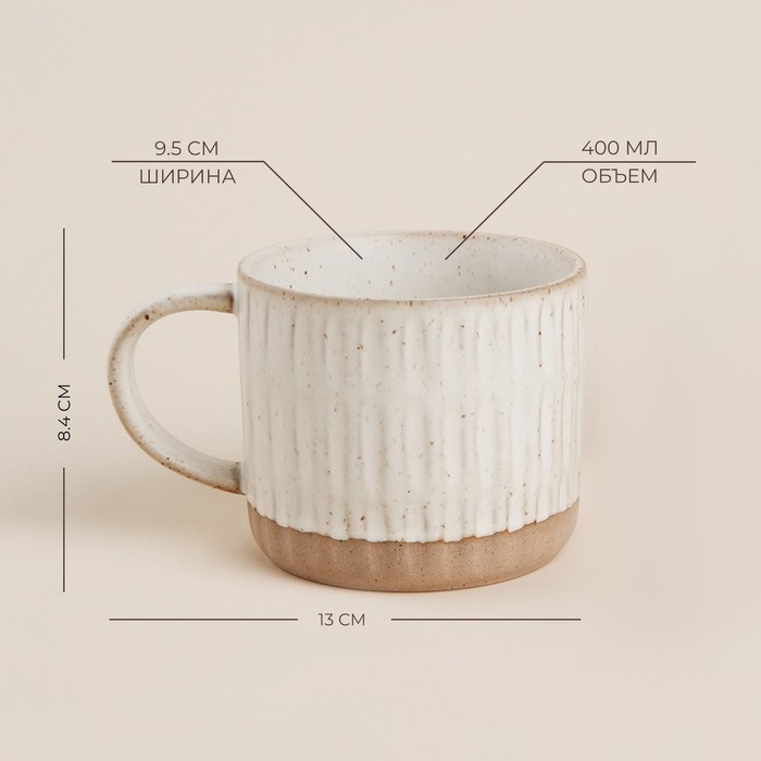 - Удобный объем: 400 мл — оптимальный размер для утреннего кофе или порции горячего чая.
