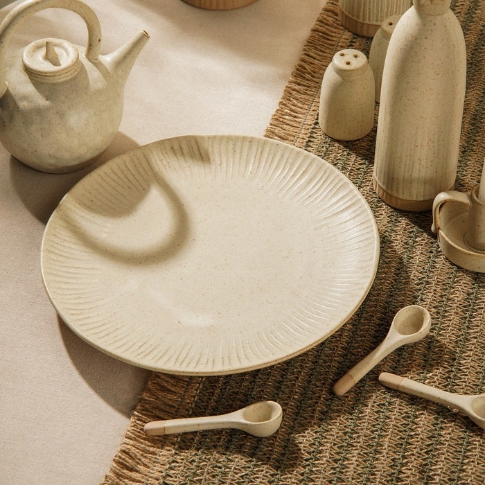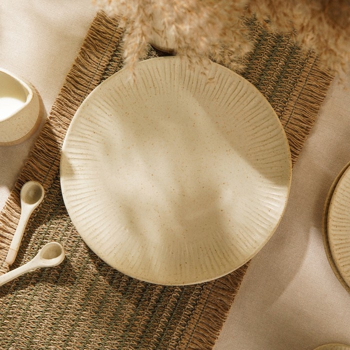 - Изысканный дизайн: бежевая керамическая тарелка с рельефной текстурой станет украшением любого стола.