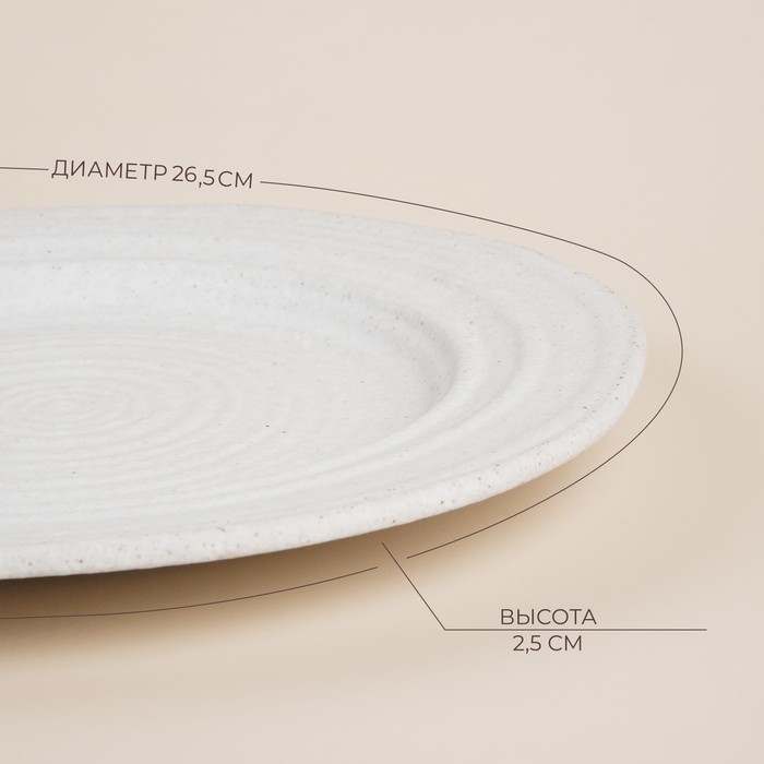 Этот изысканный набор тарелок станет идеальным дополнением вашего стола. Тарелки диаметром 26,5 см выполнены из качественной керамики и поражают своей элегантной простотой. Белый цвет и рельефная текстура придают этим тарелкам особую привлекательность, делая каждое блюдо не только вкусным, но и красиво поданным.