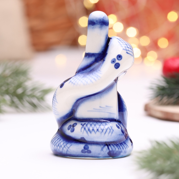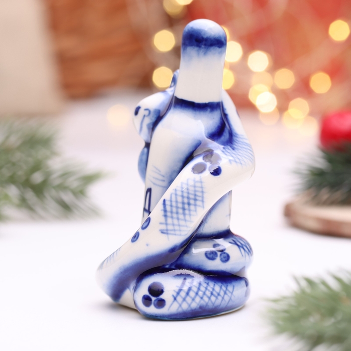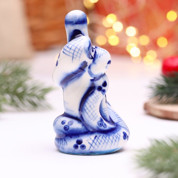 Новый год. Сувенир символ года "Змея Маруся", гжель, цвет, 4,5 см