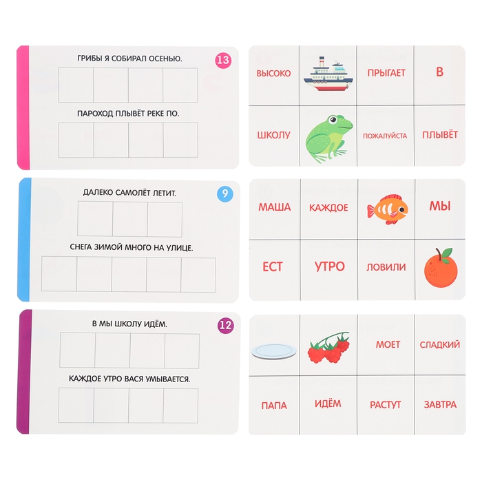 - Выберите карточку со словами. Карточки с предложениями перемешайте и сложите в колоду.