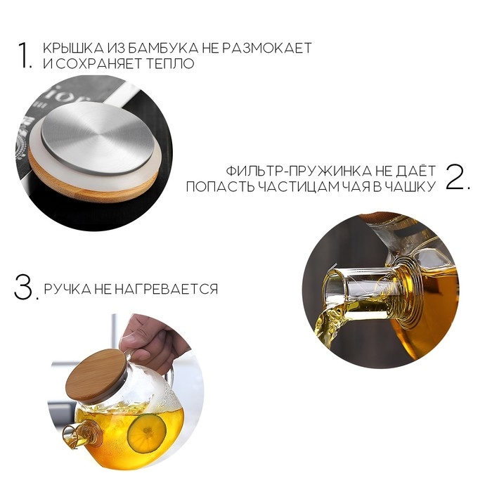 Чайник заварочный стеклянный - заварник 1500 мл