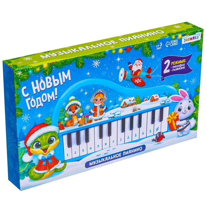 Музыкальное пианино «С Новым годом», звук, цвет синий