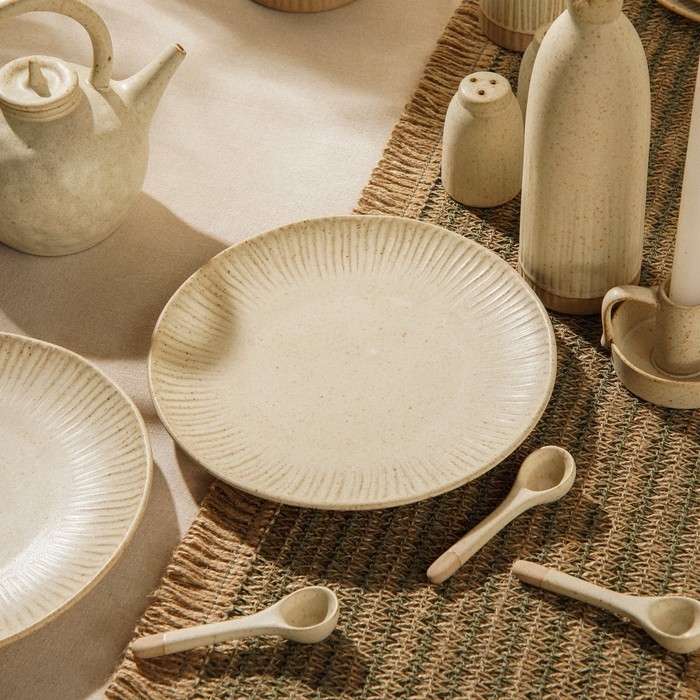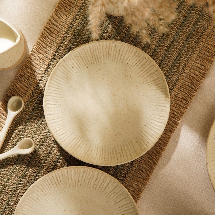 Керамика, из которой изготовлены тарелки, отличается высокой прочностью и долговечностью, а рельефная текстура придает изделиям особое очарование. Простая, но элегантная форма и отсутствие рисунка делают их универсальными для любой сервировки, будь то праздничный ужин или повседневная трапеза.