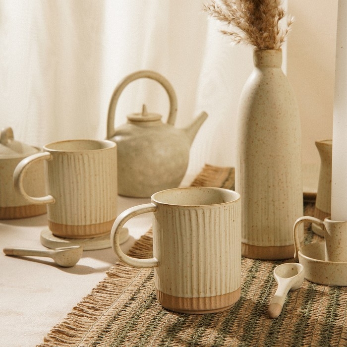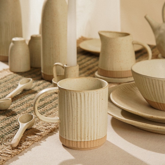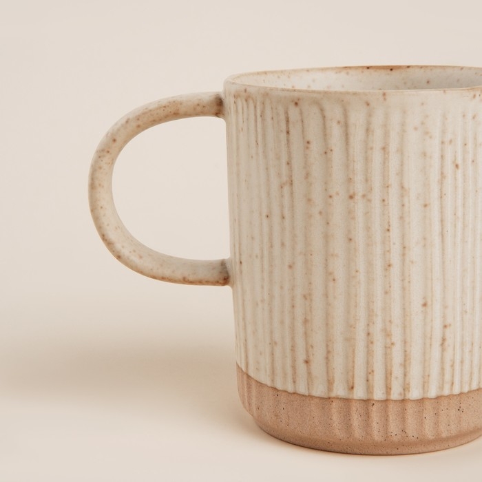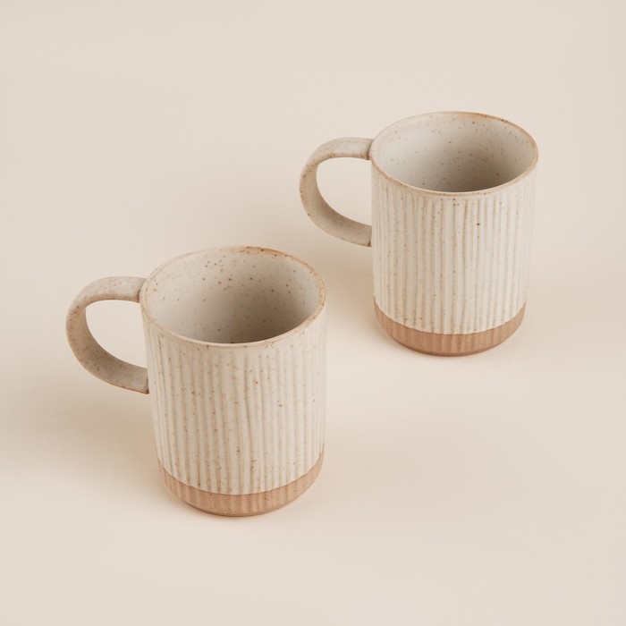 Эти кружки объемом 350 мл выполнены в нежном бежевом цвете с рельефной текстурой, что придаёт им особый шарм и тактильное удовольствие. Матовая поверхность добавляет изысканности и гармонично вписывается в любой интерьер, будь то классический или современный.