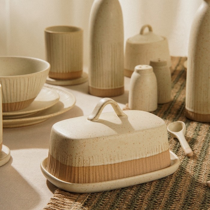 Маслёнка керамическая SL Home «Виенто», 18,5×13×10,5 см, цвет бежевый