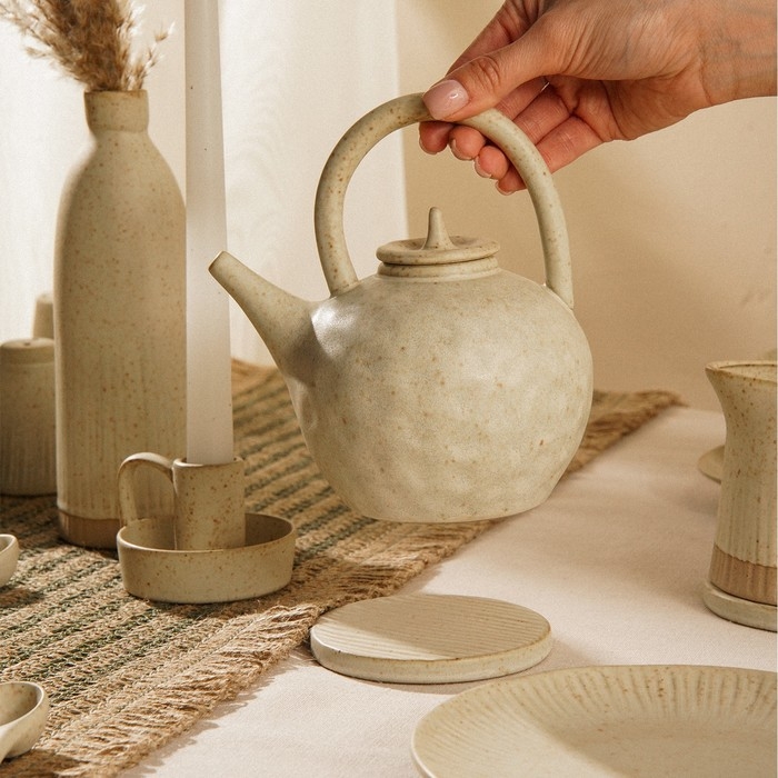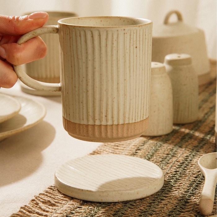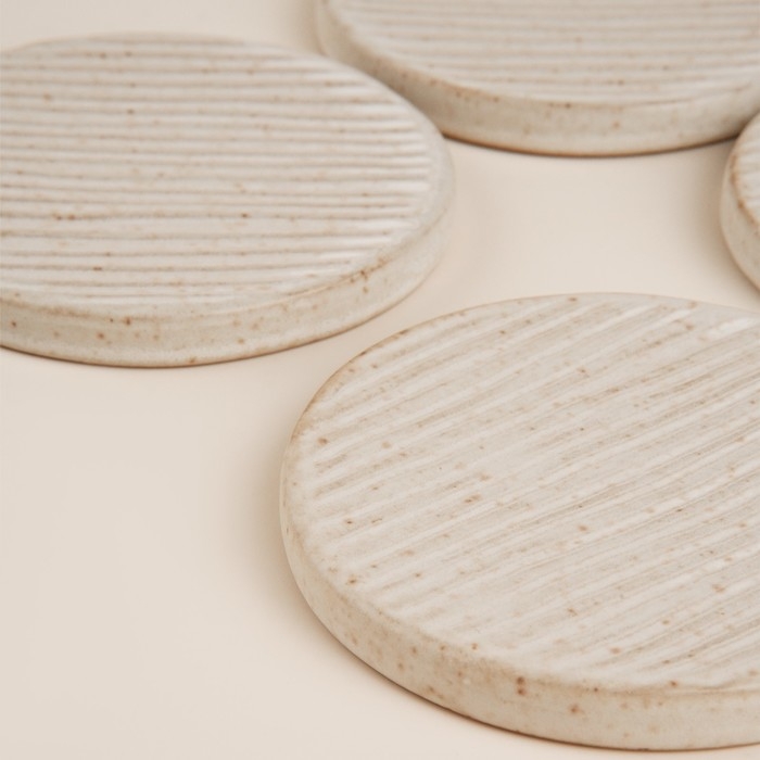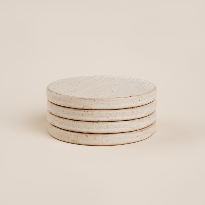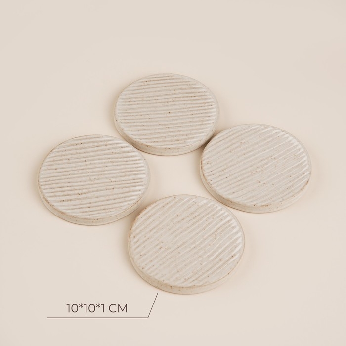 Керамическая поверхность подставок обеспечивает отличную термостойкость, позволяя использовать их для сервировки горячих блюд и напитков. Благодаря нейтральному бежевому оттенку, они легко впишутся в любой интерьер, подчеркивая гармонию вашего стола. Компактные размеры делают их идеальными для ежедневного использования, а также для особых случаев.