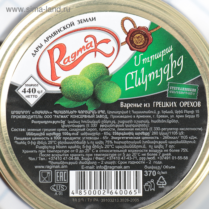 Варенье из грецких орехов ТМ Ragmak, 440 г