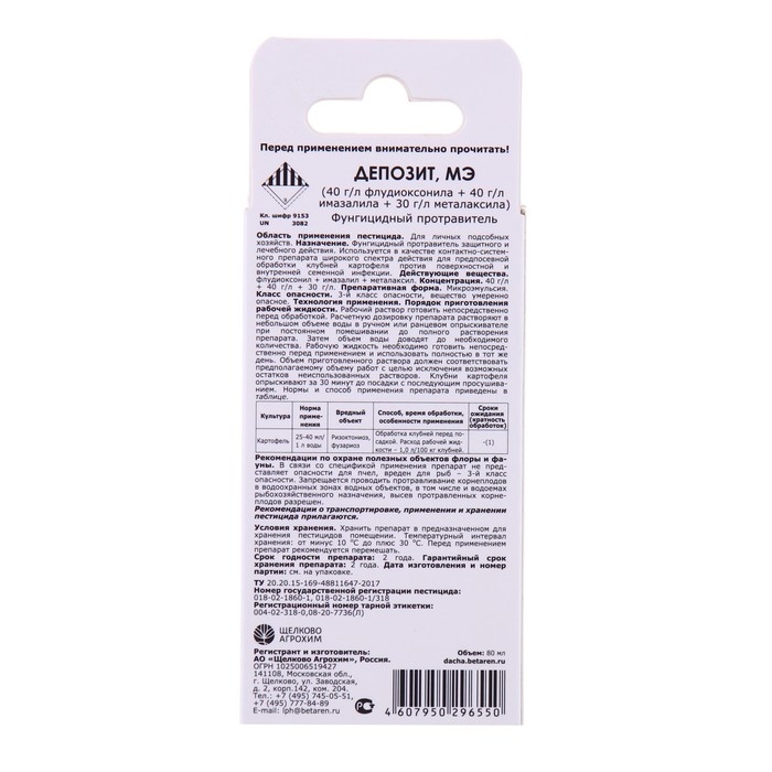 Фунгицидный протравитель семян сои, гороха, нута и клубней картофеля Депозит, МЭ, против сем 1055128