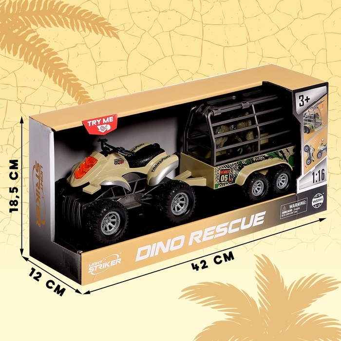 Квадроцикл «Дино», инерционный, 1:16, с динозавром, световые и звуковые эффекты