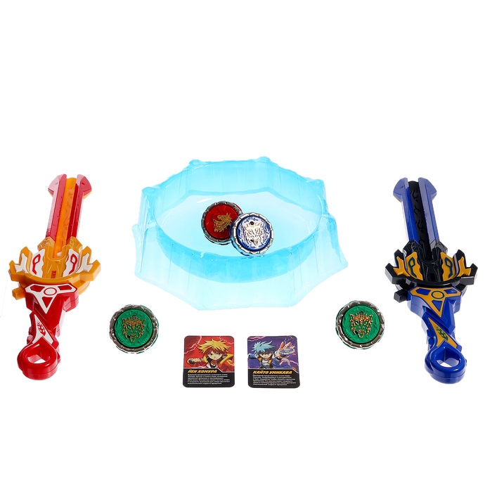- В наборе 4 волчка, 2 устройства для запуска, арена: малыш сможет устроить настоящие соревнования.