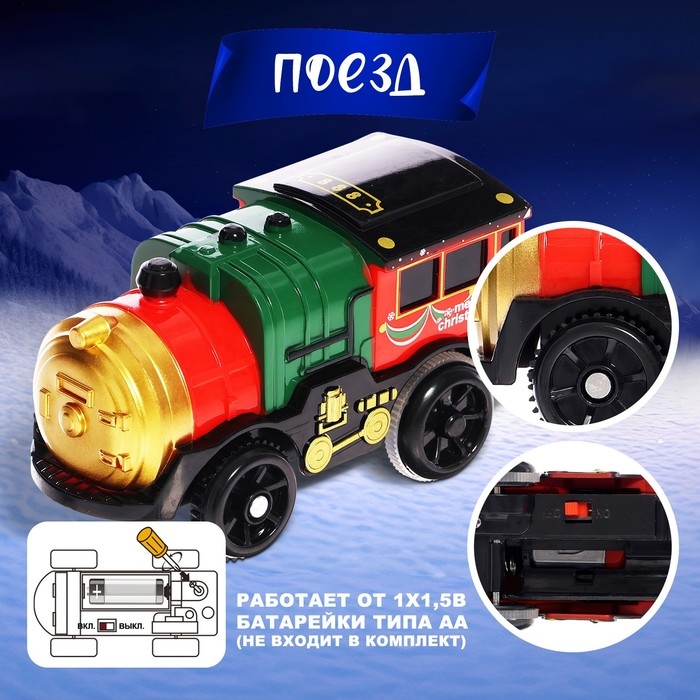 Паровоз «Поезд Дедушки Мороза», работает от батареек