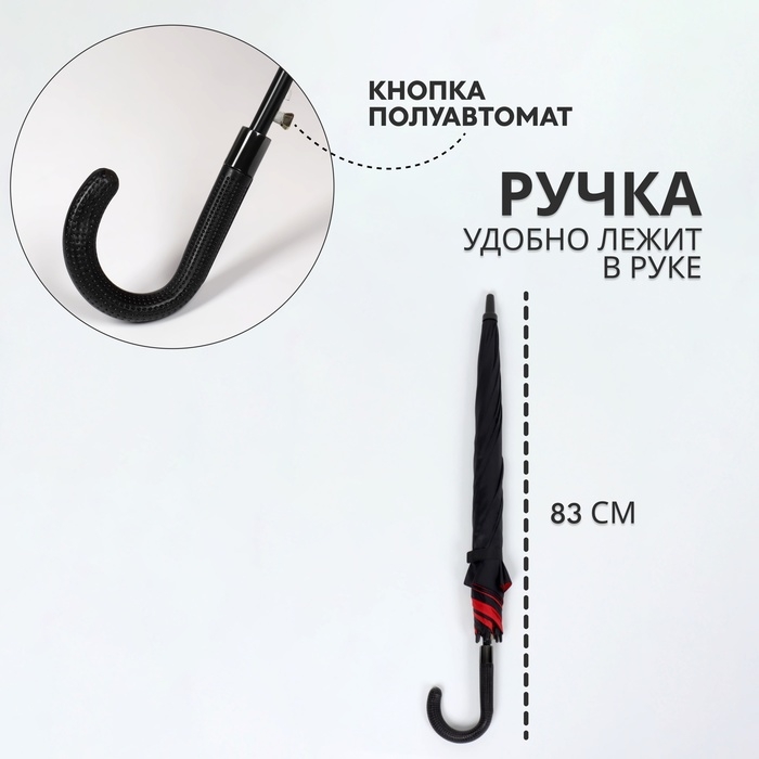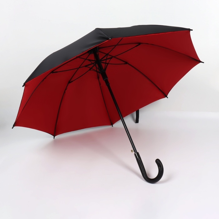 Зонт - трость полуавтоматический «Однотонный», эпонж, двухслойный, 8 спиц, R = 51/60 см, D = 120 см, цвет чёрный/красный