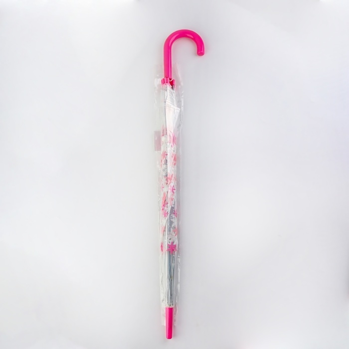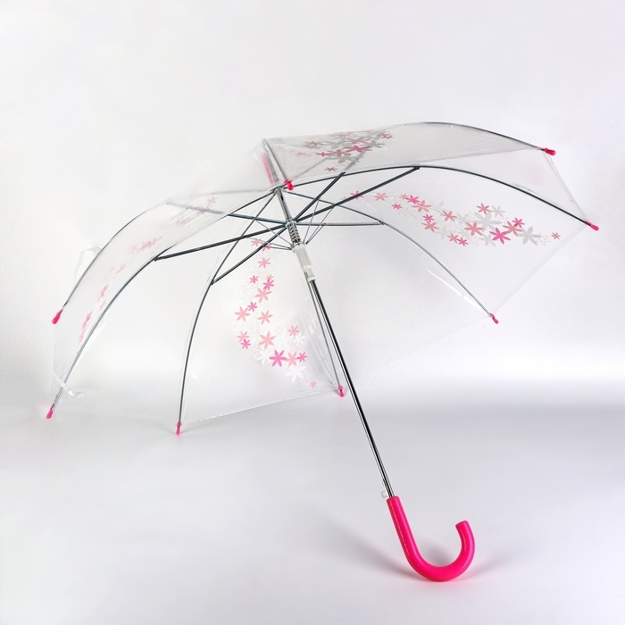 Зонт - трость полуавтоматический «Цветы», 8 спиц, R = 45/53 см, D = 106 см, цвет прозрачный/розовый