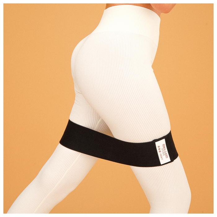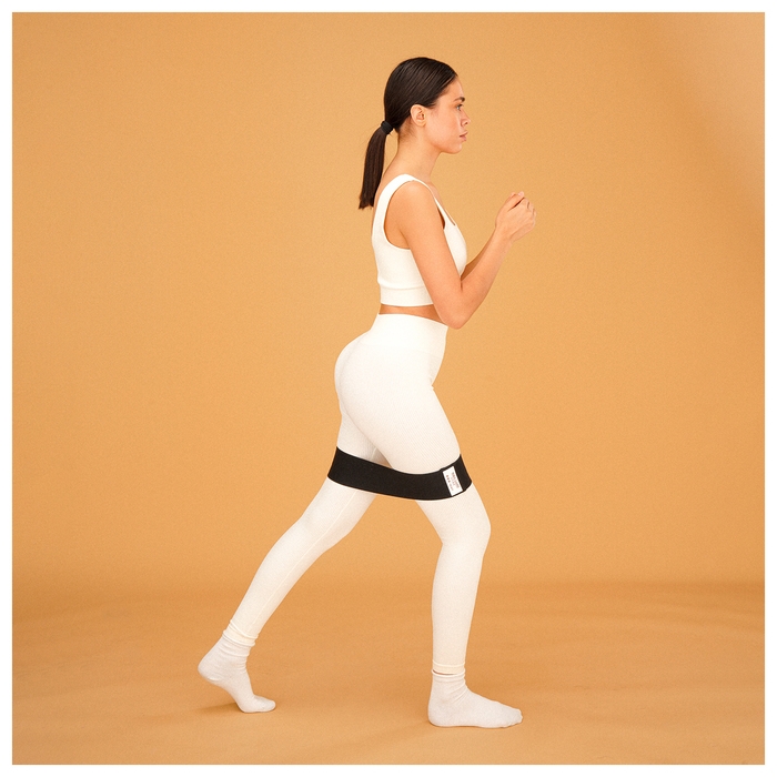 Резинка выполнена из хлопка, это обеспечивает долговечность изделия и равномерное распределение нагрузки. Благодаря текстильной поверхности она лучше держится на одежде и не скользит во время тренировки.