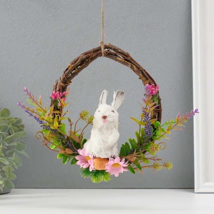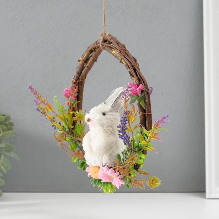 Сувенир "Белый зайка в венке с цветами" 17,5х7,5х19,5 см