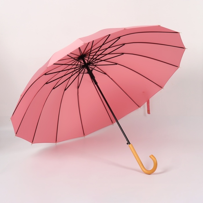 Зонт - трость полуавтоматический «Пастель», 16 спиц, R = 52/60 см, D = 120 см, цвет розовый