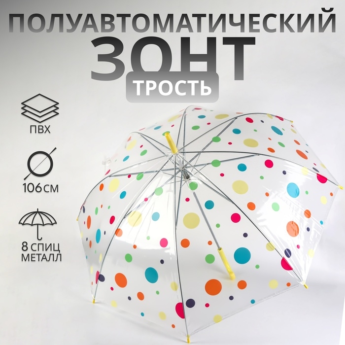Зонт - трость полуавтоматический «Круг», 8 спиц, R = 45/53 см, D = 106 см, разноцветный