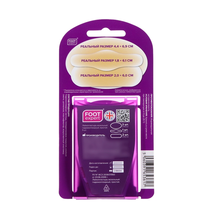 FOOT EXPERT – экспресс-решение при влажных мозолях. В состав пластыря входит гидроколлоидный полимер, состоящий из мельчайших частиц, которые образуют на поверхности тонкую пленку. При воздействии на пораженную кожу пленочка быстро впитывает отделяемую из раны жидкость, увлажняет поверхность кожи, хорошо пропускает воздух, не позволяет формироваться рубцам и корочкам при заживлении мозоли. Благодаря большому размеру пластырь содержит больше гидроколлоидной массы, чем другие пластыри, надёжнее защищая от трения. Оптимален для болезненных волдырей, например, вызванных спортивными занятиями.