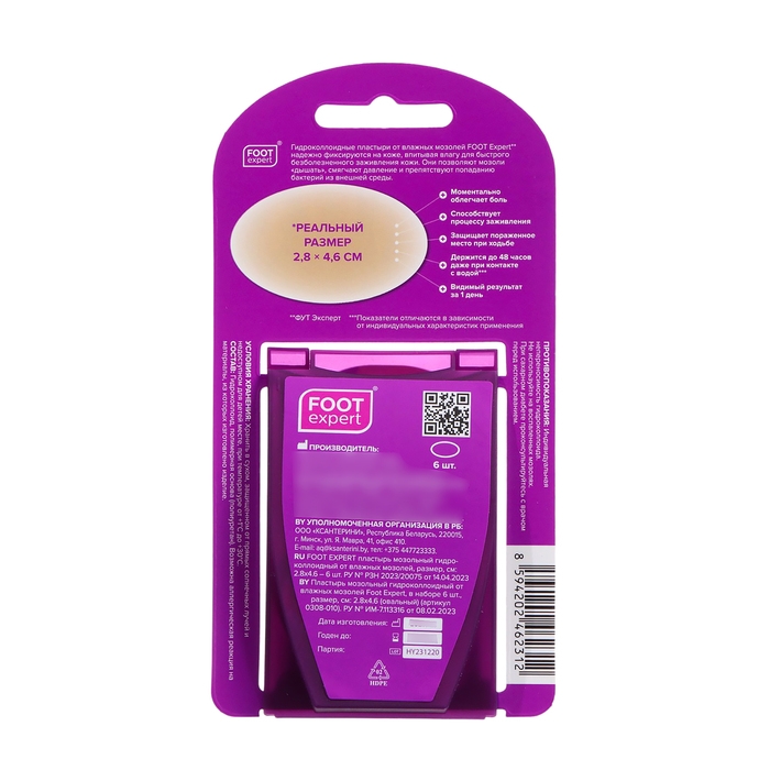 Пластырь FOOT EXPERT мозольный гидроколлоидный от влажных мозолей, размер, см: 2.8х4.6