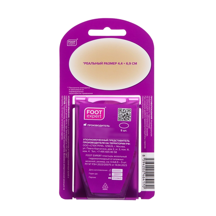 Пластырь FOOT EXPERT мозольный гидроколлоидный от влажных мозолей, размер, см: 4.4х6.9